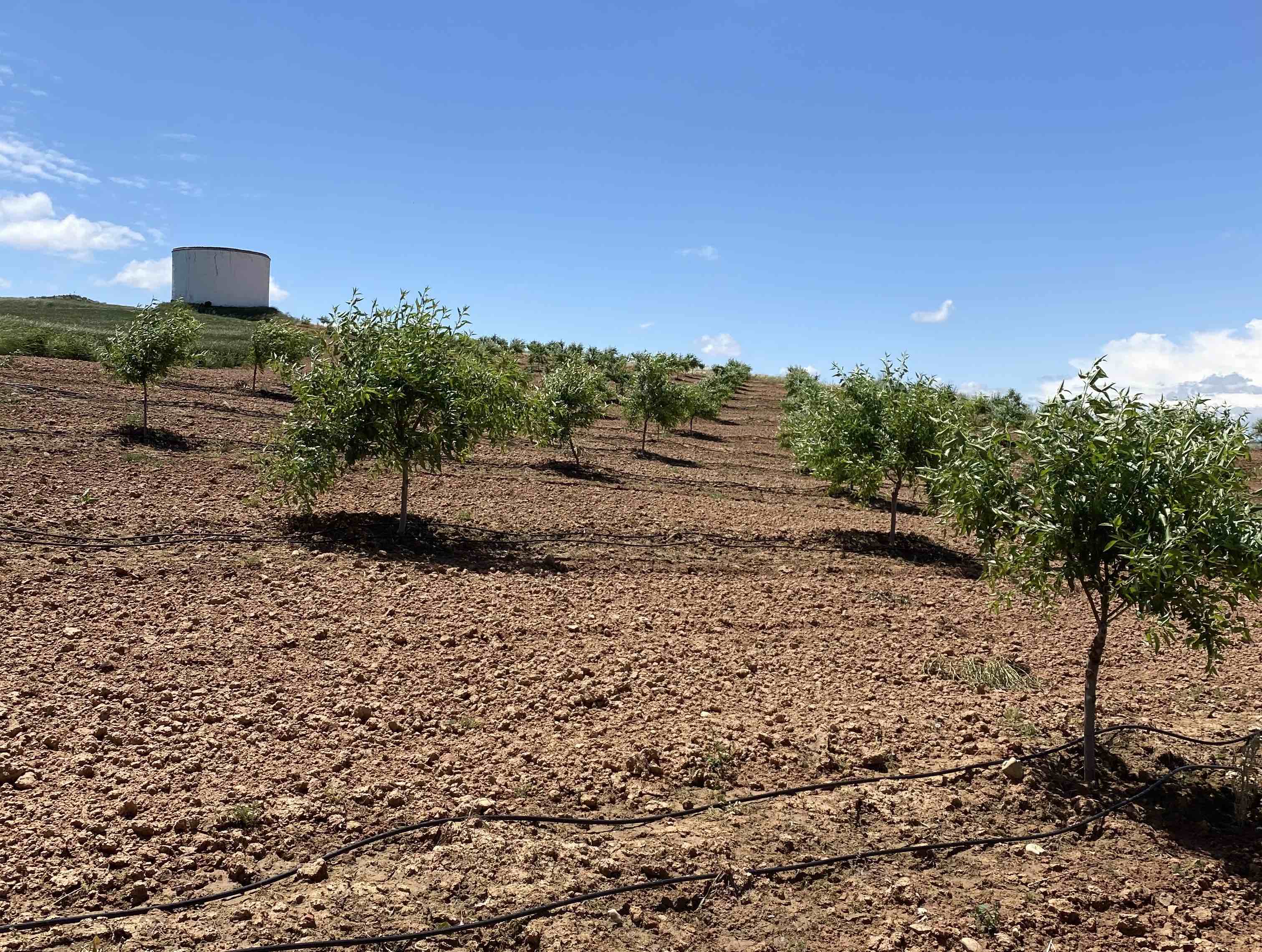 Dos varieades de Pistacho, Sirora y Kerman, con objetivos de venta y fechas de polinización diferentes se han palantado en el año 2022 con el objetivo ambicioso de dar una primera cosecha en 2026. En total 22ha plantadas en un marco real de 6x4 en una única parcela con una pendiente media del 11%.