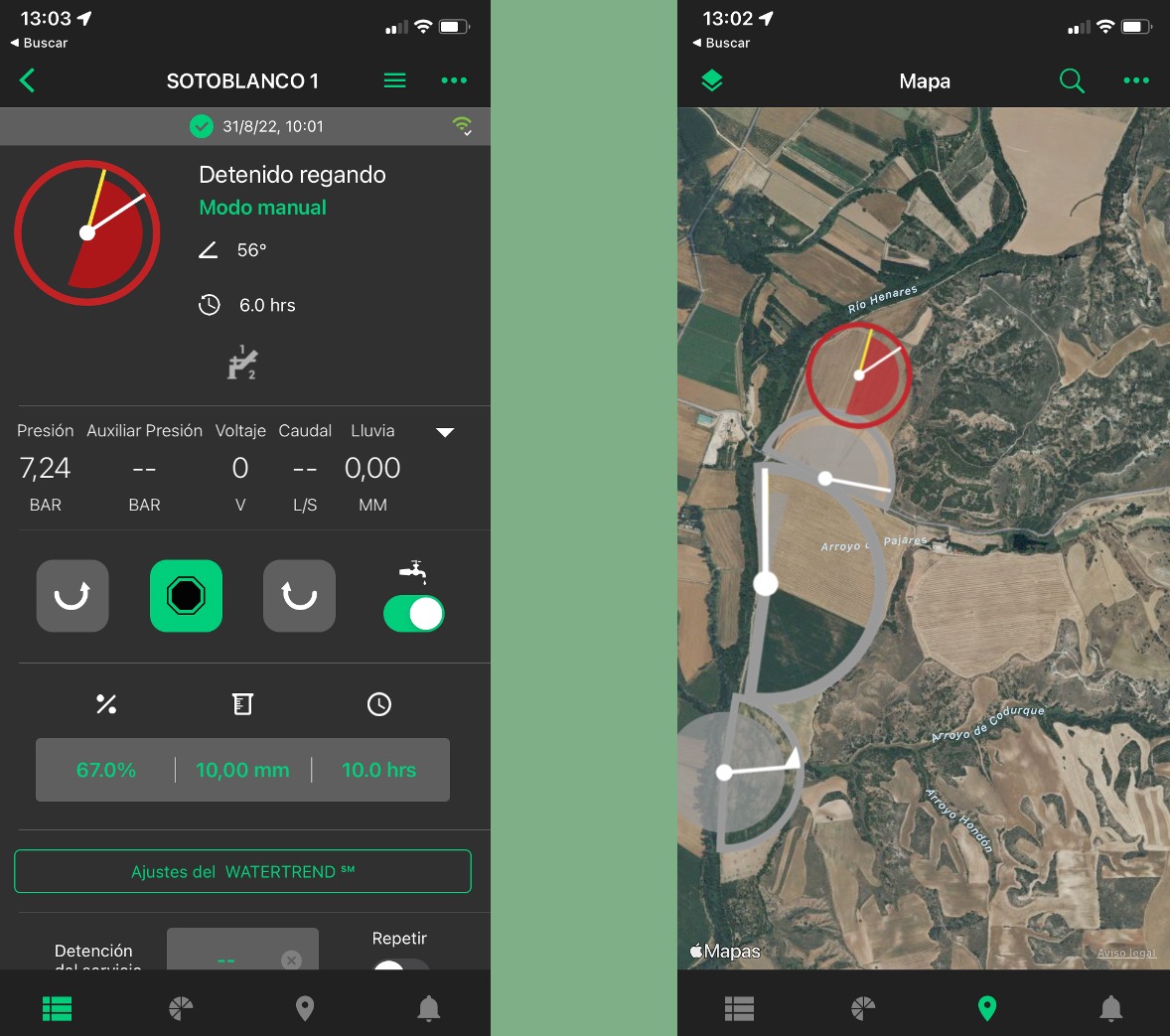 Controla cañones de riego e historiales de riego.